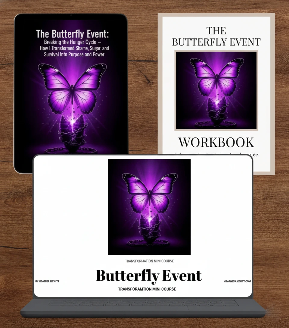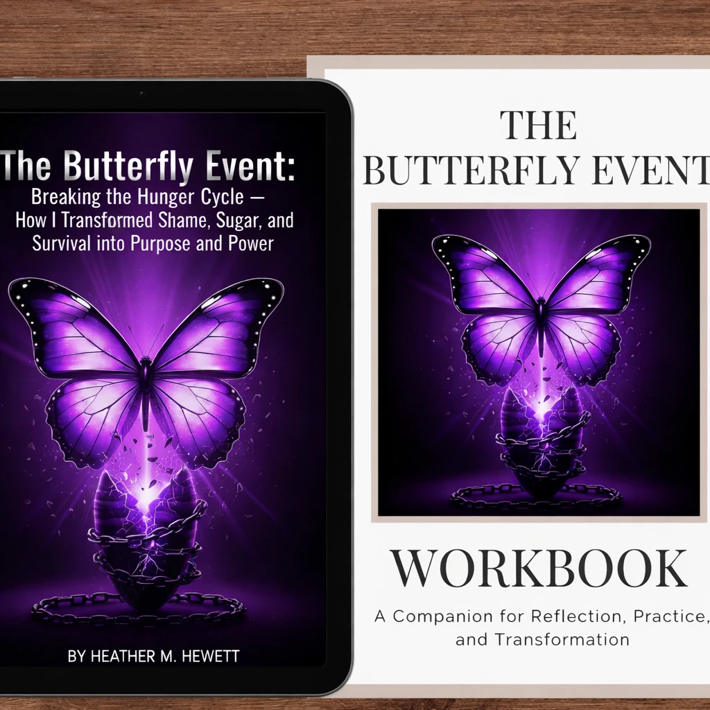 Start your transformation with The Butterfly Event: Breaking the Hunger Cycle. This inspiring eBook blends storytelling, neuroscience, and soul work to help you heal from emotional eating, chronic stress, and self-blame. Through powerful insights and reflection prompts, you’ll learn how to regulate your nervous system, release the sugar–shame cycle, and reconnect to your body’s wisdom.